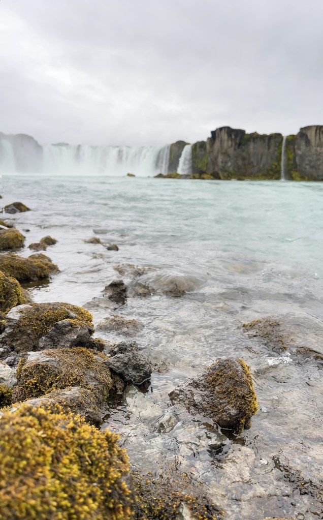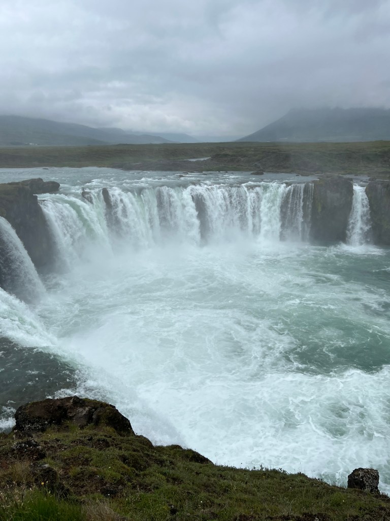 Standing before Goðafoss, I could feel the raw power and serenity of Iceland converge in one breathtaking moment. The deep turquoise waters crashing into the basalt rocks below create a scene that feels almost otherworldly – like nature’s own cathedral. It’s no wonder this waterfall is tied to ancient legends and Icelandic history.
